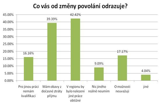 „Na profesní změně láká lidi vidina lepšího finančního ohodnocení a práce v oboru, který by je bavil, či zajímal,“ říká hlavní manažer projektu Národní soustava kvalifikací, Ivo Jupa a doplňuje, že od změny je zároveň často odrazují překážky, které lze však snadno překonat. „42 procent z nich se bojí, že by v regionu jinou práci nenašli, 40 procent odrazuje dočasná ztráta příjmů a 16 lidí ze 100 si říká, že nemá pro jinou práci kvalifikaci,“ shrnuje Jupa.