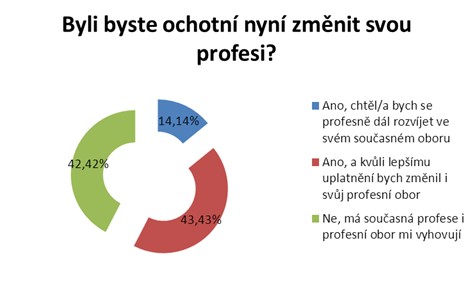 „Na profesní změně láká lidi vidina lepšího finančního ohodnocení a práce v oboru, který by je bavil, či zajímal,“ říká hlavní manažer projektu Národní soustava kvalifikací, Ivo Jupa a doplňuje, že od změny je zároveň často odrazují překážky, které lze však snadno překonat. „42 procent z nich se bojí, že by v regionu jinou práci nenašli, 40 procent odrazuje dočasná ztráta příjmů a 16 lidí ze 100 si říká, že nemá pro jinou práci kvalifikaci,“ shrnuje Jupa.